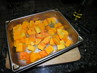 .....then I cut them into cubes.....put them in a pan and drizzled olive oil over them, then added salt and pepper.....